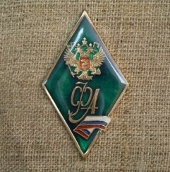 Значок-ромб выпускника финансовой академии. Значок изготовлен с применением эмалей. Трёхцветная эмаль - флаг Российской Федерации.