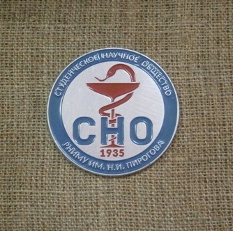 Медицинский факультет последнего  в 1930 году стал основой для создания мединститута. А  в 1956 году институту присвоили имя великого врача Н. И. Пирогова. Нами был изготовлен значок для студенческого научного общества.